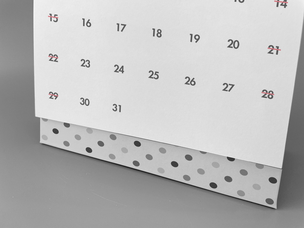 ● 받침대 - 인쇄된 패턴을 활용하여, 브랜드 이미지 전달과 주목성을 갖춘 특별한 달력입니다.